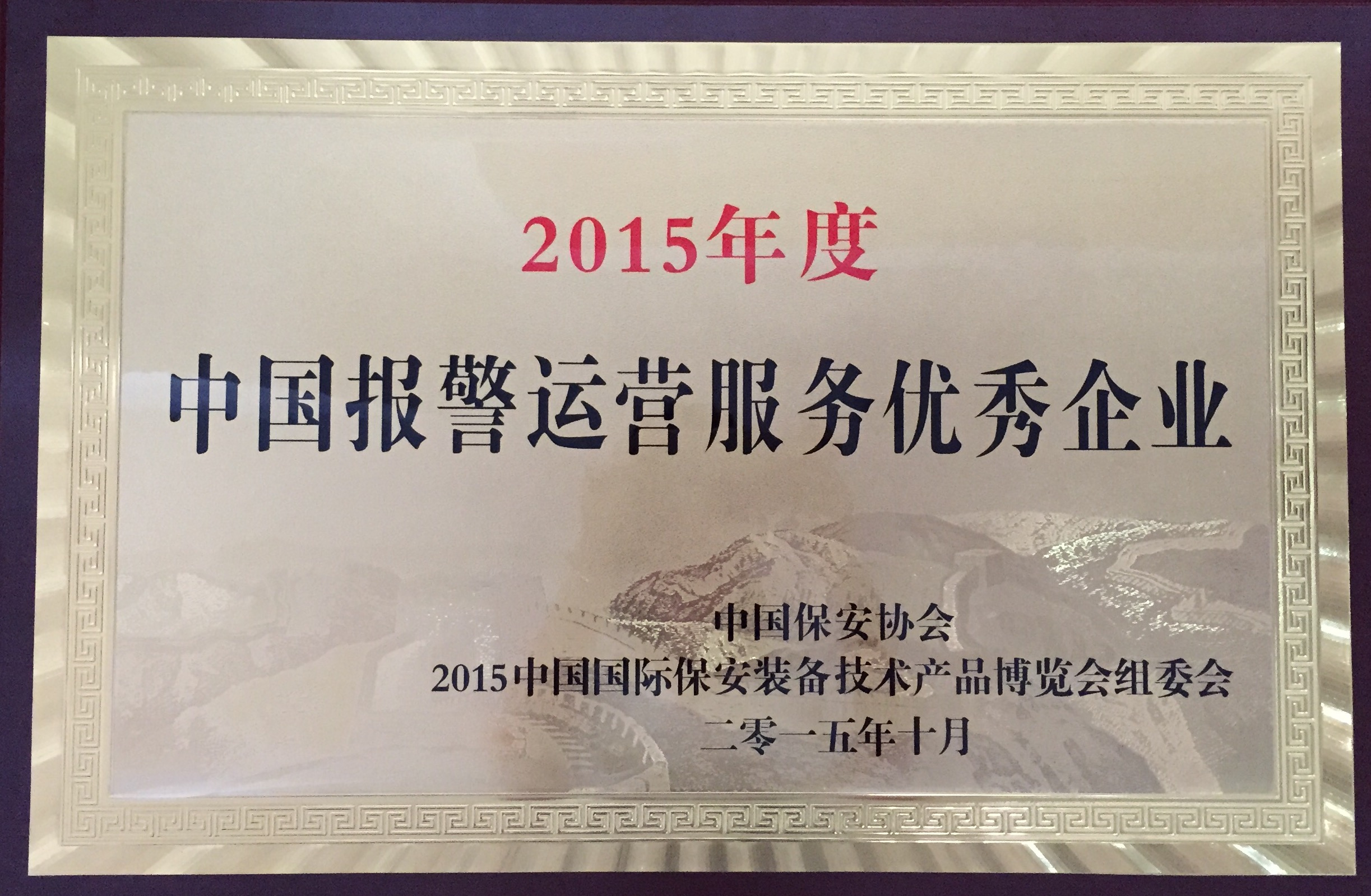 杭州拱墅保安服务公司圆满2015年度中国报警运营服务优秀企业