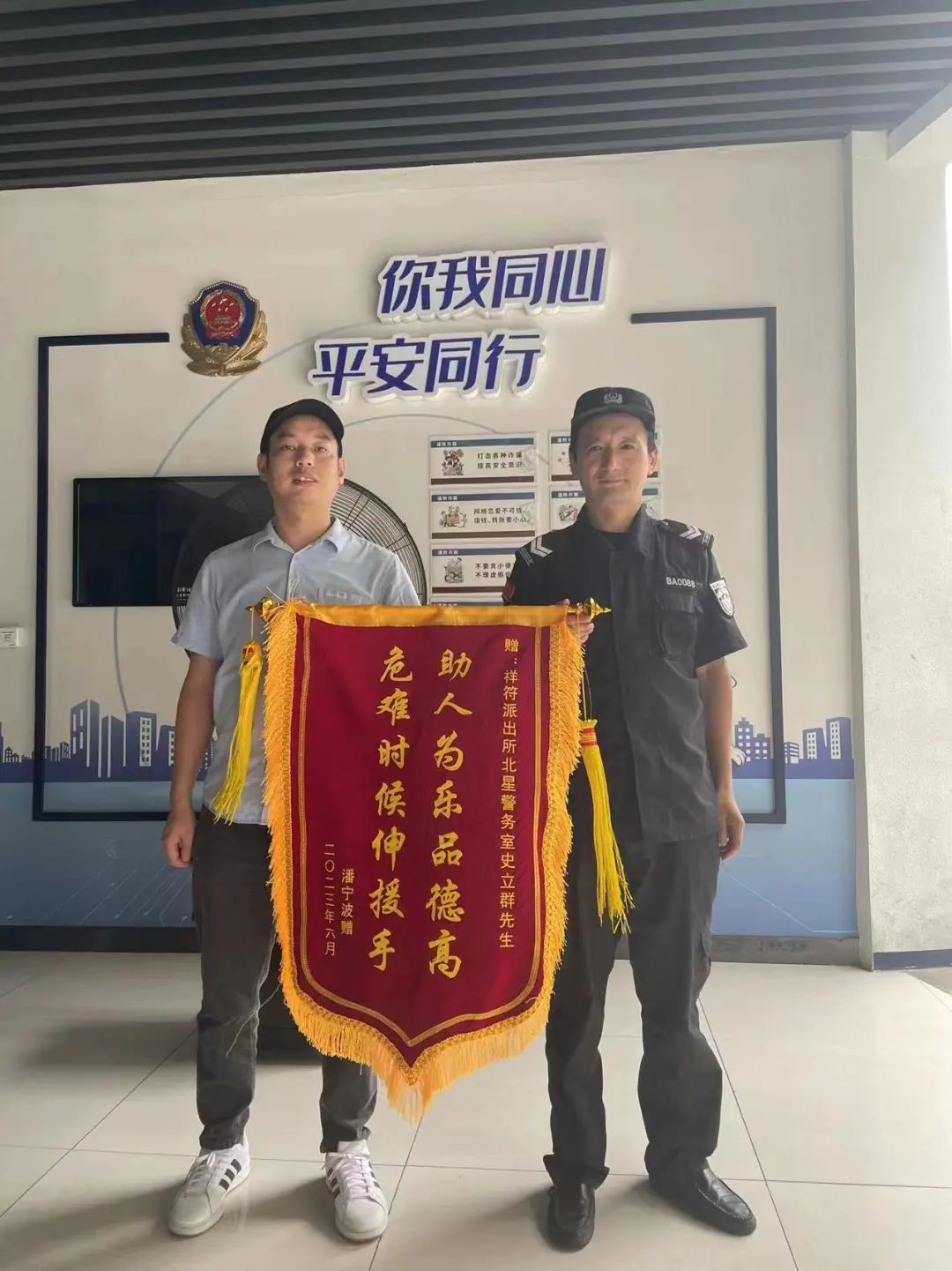 近日,公司外派北星警务室网格员史立群,在上班途中,路过金昌路桥边辅道时发现一名男子连车带人摔倒在地,头上都是血,但是没人上前帮忙。史立群见状立马停下,脱下自己的衣服为他头部进行止血的同时,拨打110、120。在等待救护车到来的期间,史立群全程陪伴在受伤男子身边,双手扶着受伤男子的头部,大约坚持了半个小时,直到120将受伤男子拉走,他才放心离开。
