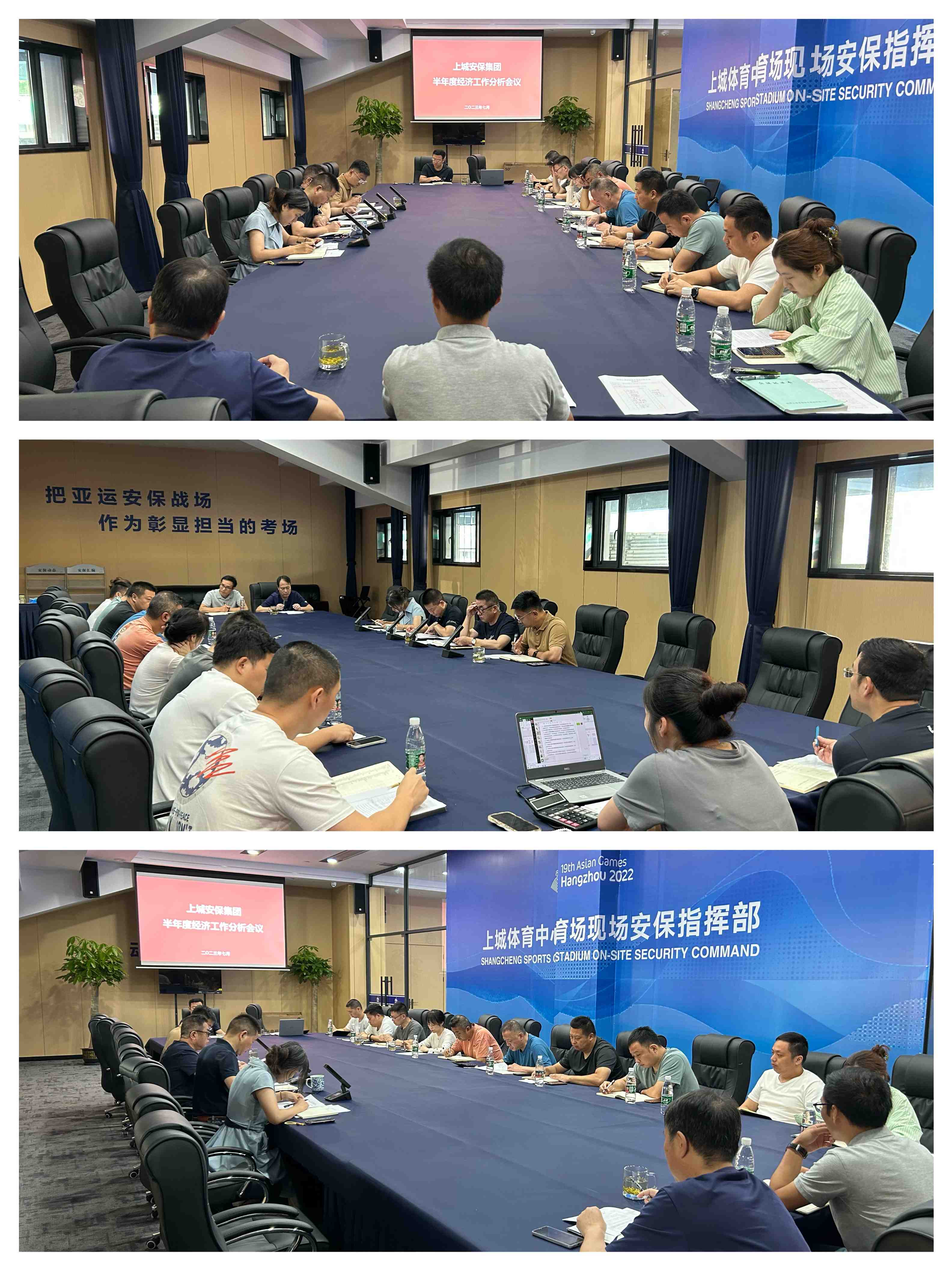 7月27日上午,上城安保集团召开半年度经济工作分析会,全体班子成员及部门负责人和子公司主要负责人参会。会议全面总结上半年生产经营和重点工作完成情况,对当前存在问题进行分析并研判当前发展形势,对下半年工作提出指导意见。会议强调,要紧紧围绕企业发展需要,不断深挖资源效益,多角度发力,进一步拓宽资金来源;要聚焦护航亚运主题主线,积极跟进亚运安保各项安排,不断完善亚运场馆安全保障方案,助力构筑亚运安保铜墙铁壁;要时刻绷紧“安全弦”,紧盯关键环节再排查、再确认,一盘棋抓好各类安全风险防控,确保各环节万无一失、各领域绝对安全,全力护航平安亚运。