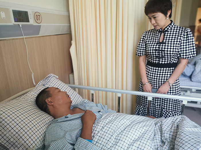 在队员的病床前,万总放下水果篮,亲切地询问队员的伤情,第一时间告知队员,公司有额外给员工购买意外险,公司在了解到员工突发这一状况,已经第一时间联系了保险公司理赔员,相关赔付,后期公司相关部门同事都会一起协助办理的。万总宽慰队员只管安心养伤,争取早日康复,鸿民保安集团大家庭所有同仁都盼望着早日迎接您的健康归来。