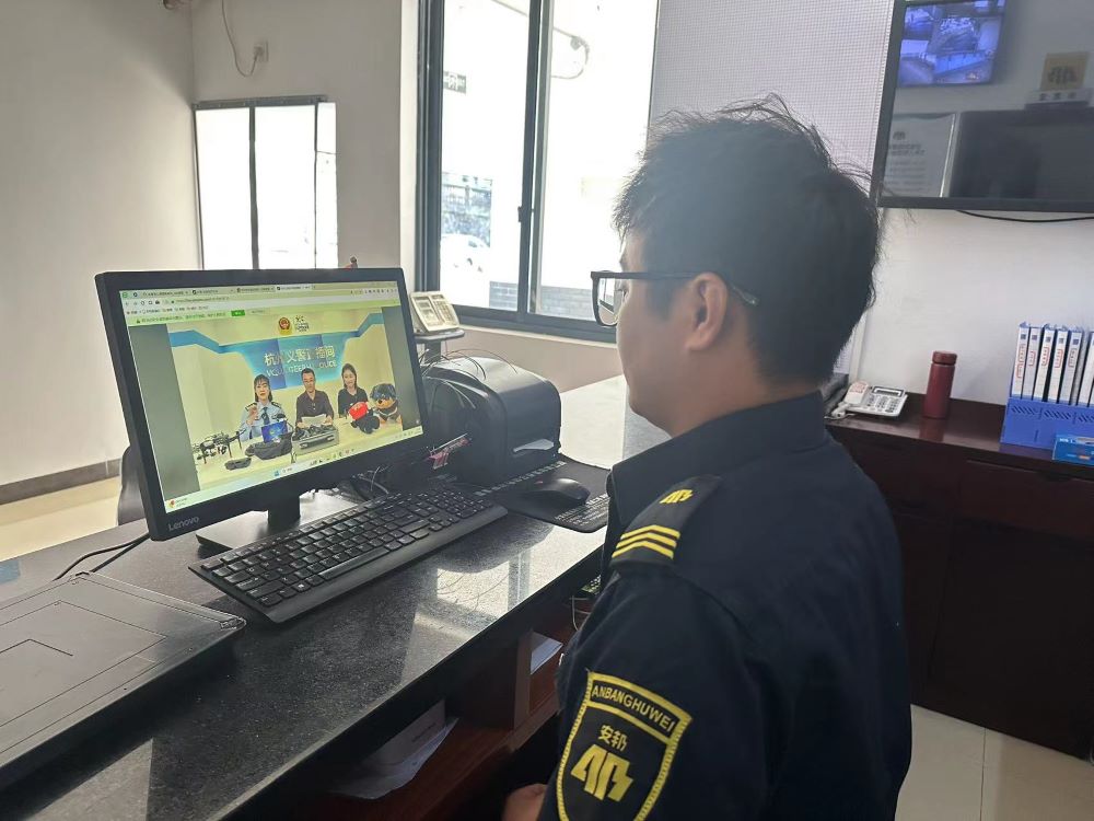 单位组织全员观看杭州公安“无人机政策宣传”网络直播。