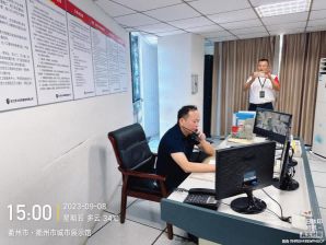 9月8日15:00,随着总指挥下达演习开始指令,消防广播播报、消控员将“模拟火灾”情况及时上报。