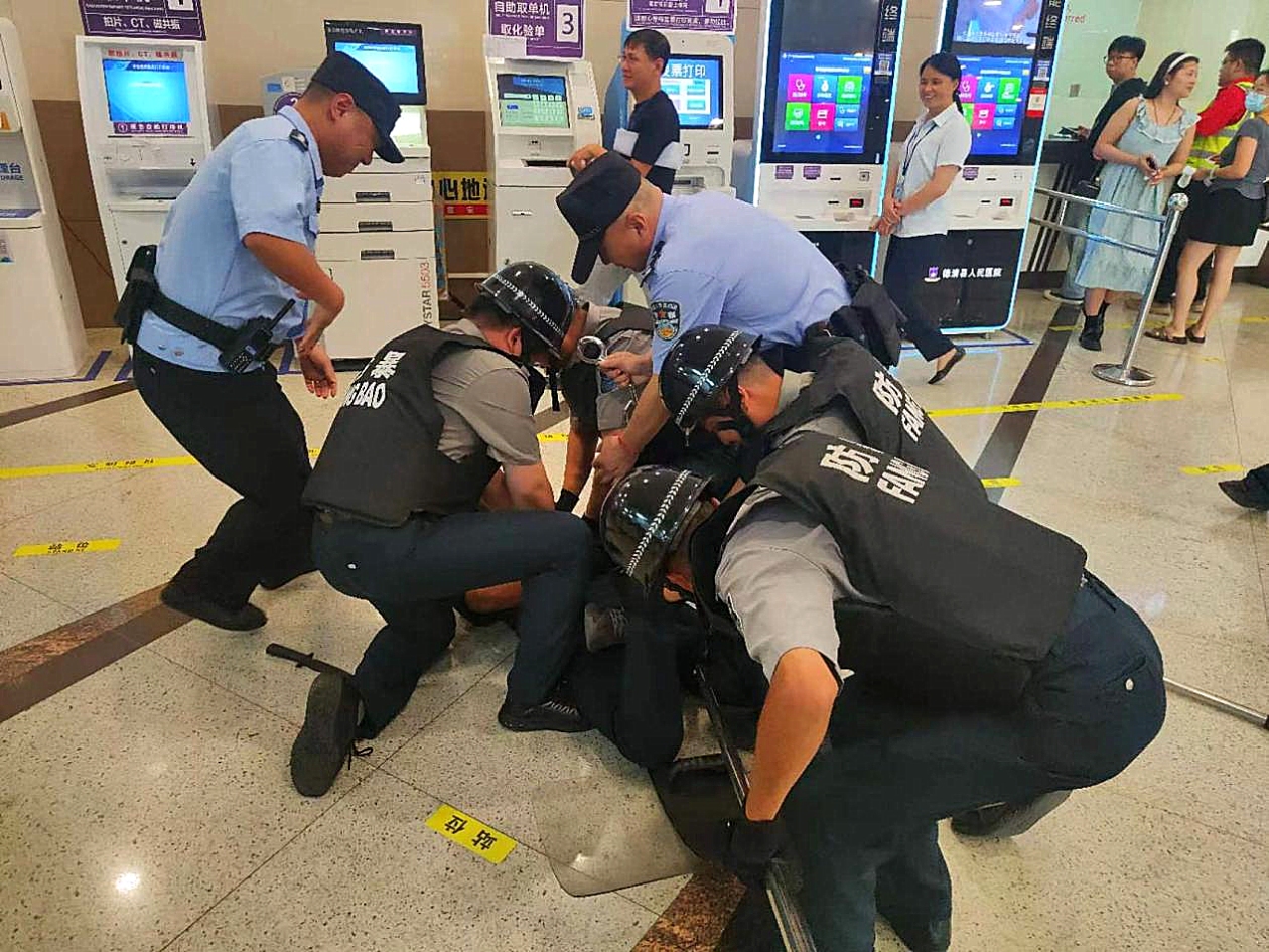 民警与安保人员分工合作、密切配合,迅速将暴徒制服并带离现场。