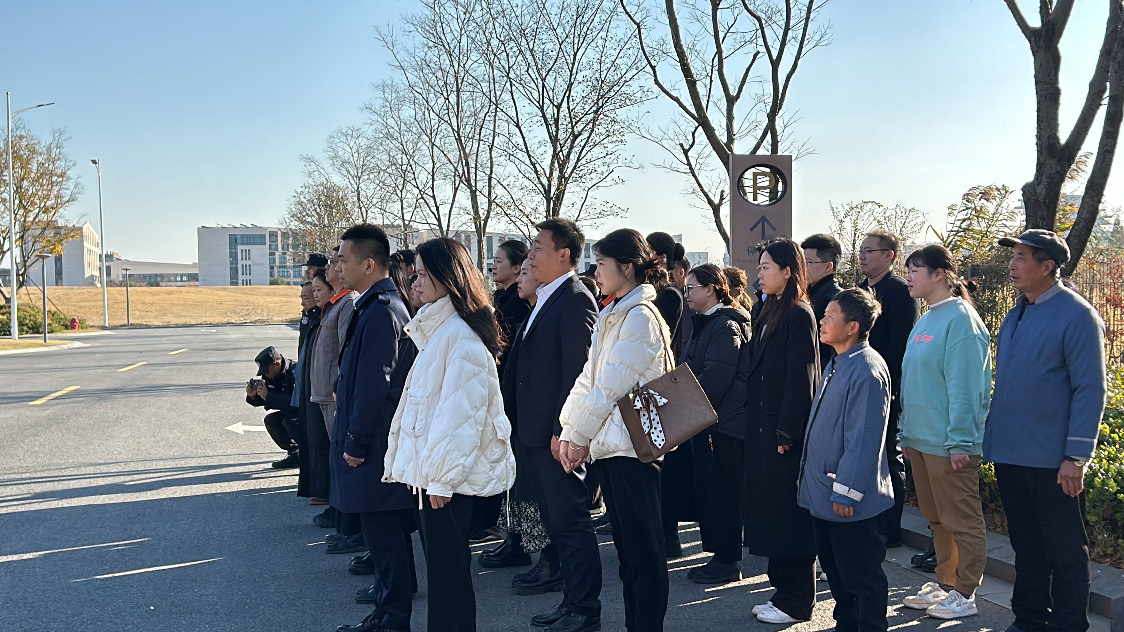 在雄壮的国歌声中,鲜艳的五星红旗冉冉升起,在场人员全体庄严肃立,向国旗行注目礼。