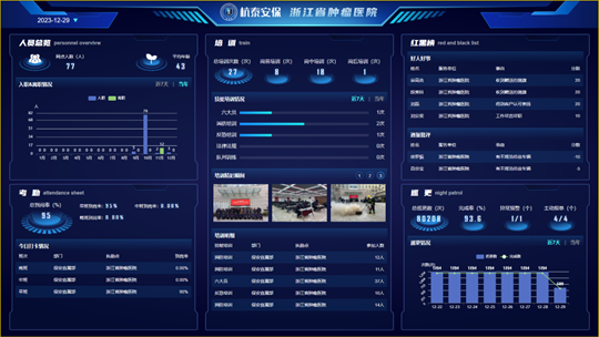 浙江杭泰安保服务有限公司历时22个月用心打造的安保数字平台于2023年12月29日在公司高总、邵总与浙江省肿瘤医院党委委员、副院长邵国良及医院保卫部的见证下在浙江省肿瘤医院项目部正式上线运行。