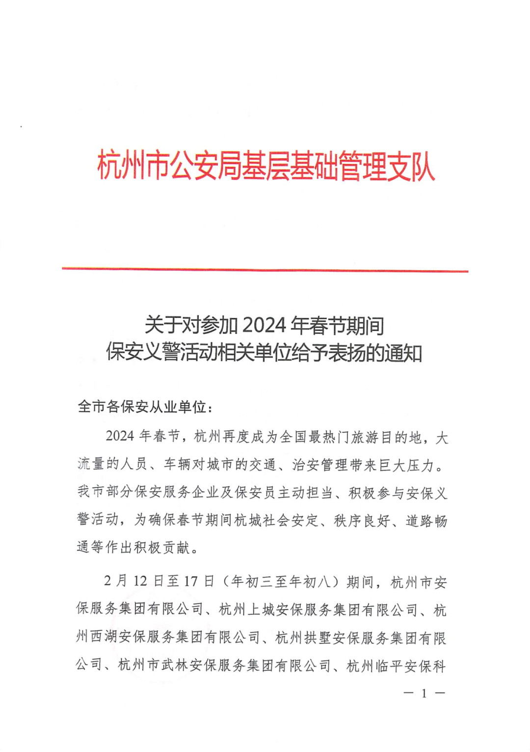 龙年春节,火红吉祥、喜气热闹,在铺天盖地的红色海洋中,有一抹红色格外亮眼闪耀,他们就是杭州春节保安义警队伍。达华智慧安保集团挺膺担当、努力作为,积极参与此次春节保安义警活动。