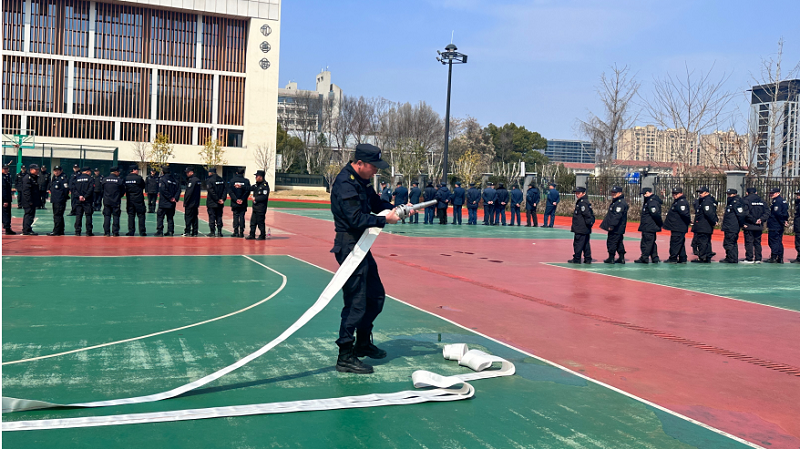 实操环节,针对近期发生的消防安全事件,保安公司特保队长徐伟康带领特保队员作为教官,就学校常见的消防器材,常见的引火源进行了知识技能培训。并针对消防设备、反恐装备的使用进行了专项技能分组培训。