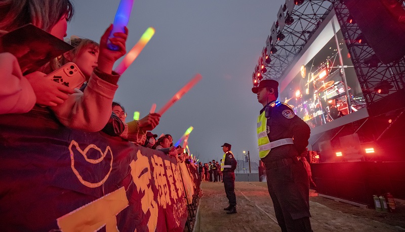 在现场音乐的助力下,观众气氛高涨,欢呼呐喊此起彼伏。安保人员及执勤民辅警各司其职、恪尽职守,采用视频、无人机、步巡等方式,严格落实各项安保措施,积极开展巡逻防控、人员疏导、热情服务,给音乐节带来满满安全感。