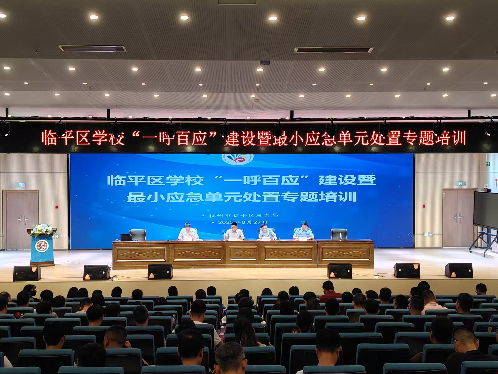 为进一步提升中小学幼儿园应对突发事件的处置能力,筑牢校园安全防线,8月27日,临平区教育局会同区委政法委、区公安分局组织开展学校“一呼百应”建设暨最小应急单元处置专题培训,全区中小学、幼儿园安全负责人共260余人参训。区教育局、区委政法委、区公安分局相关领导出席培训活动。