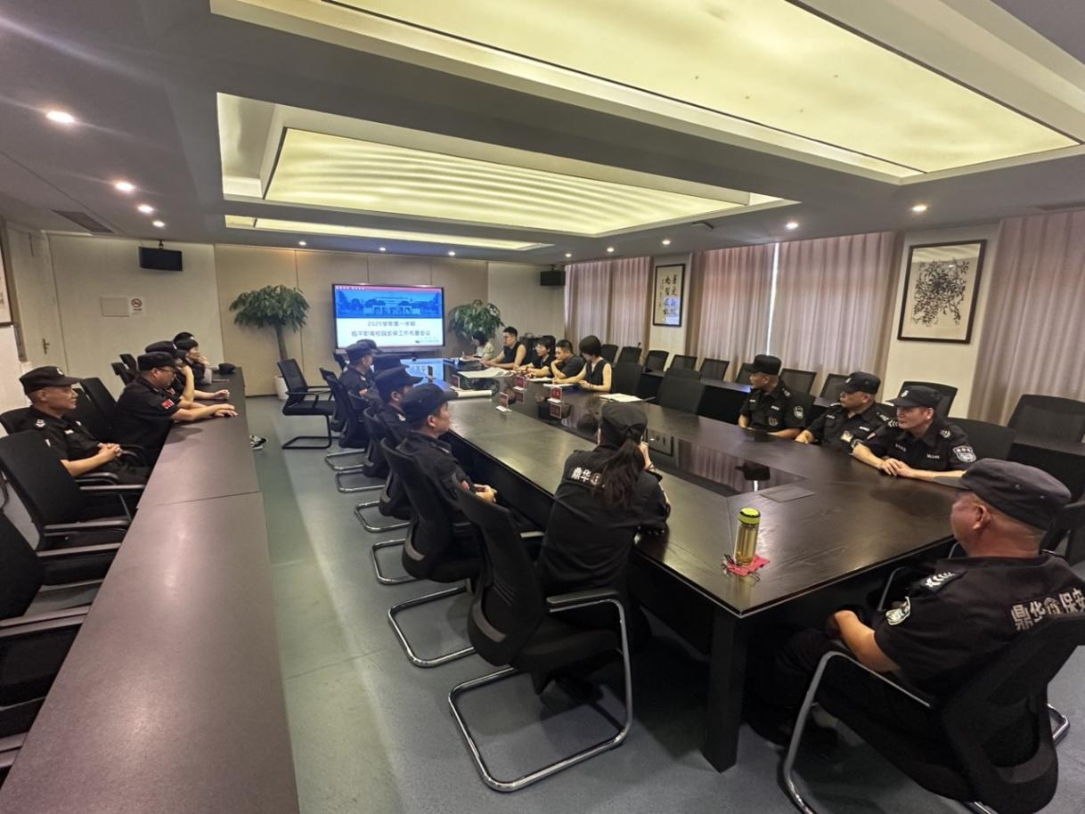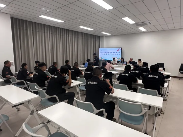 为明确开学安保职责,强化应急处置能力,筑牢校园安全防线,为校园安全保驾护航,杭州鼎华保安服务有限公司安保负责人协同各个学校安保负责人给各学校保安员开展安保会议。