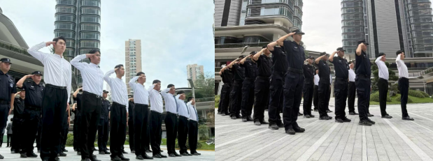 晨曦初露,步履铿锵。9月24日清晨,力邦保安驻EIC项目团队已全员集结完毕,在现场主管与队长的带领下,以一场斗志昂扬的军事队列训练与跑步健身,开启了新一天的安全守护征程。