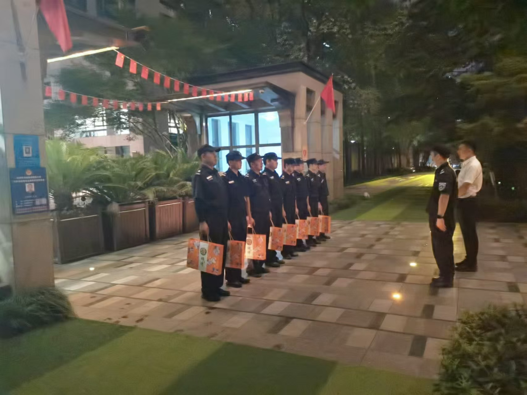 金秋送爽,月满中天。值此中秋与国庆双节同庆、阖家团圆的美好时节,为将双节温暖与关怀传递给每一位奋战在基层一线的员工,弘扬中华优良传统文化与家国情怀,践行公司“以人为本”的人文关怀精神,浙江绿城保安服务有限公司管理层亲自带队,深入到多个服务项目点、执勤岗位,为员工们送上中秋节日礼品与诚挚的祝福。