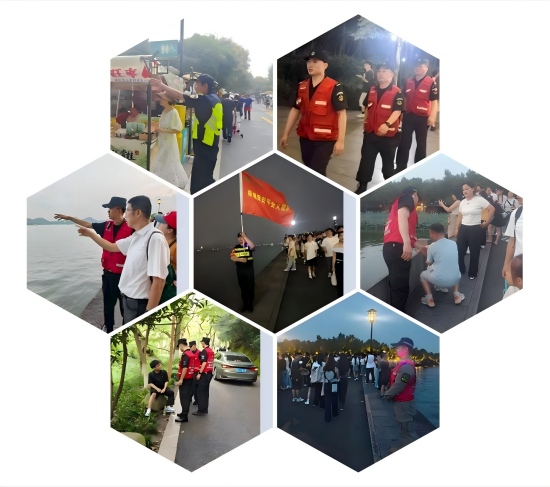 2025年10月1日至8日,杭州市保安协会组织开展国庆保安义警活动。杭州市安保服务集团有限公司、浙江安邦护卫安全服务有限公司、杭州拱墅安保服务集团有限公司、杭州市武林安保服务集团有限公司、杭州西湖安保服务集团有限公司、众联(浙江)安全服务有限公司、杭州余杭安保服务有限公司、浙江达华智慧安保集团有限公司、浙江绿城保安服务有限公司、浙江盛安保安服务有限公司、浙江德邦保安服务有限公司、杭州明邦保安服务有限公司、浙江世邦安保服务有限公司、浙江万全保安服务有限公司等14家保安公司积极响应,挑选骨干力量,每天组织100名保安义警到断桥、湖滨、灵隐寺、北高峰、满觉陇、六和塔、九溪、革命烈士纪念馆等西湖景区开展志愿服务活动,累计为游客群众提供指路、咨询等服务1.67万人次,劝导不文明行为400余起,帮助寻回走失老人、小孩23人,捡拾归还遗失物品10件,开展反诈宣传100余次,协助处置各类事件22起,为维护国庆期间杭州市社会平安、和谐、有序作出积极贡献。