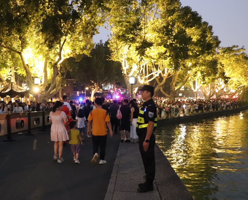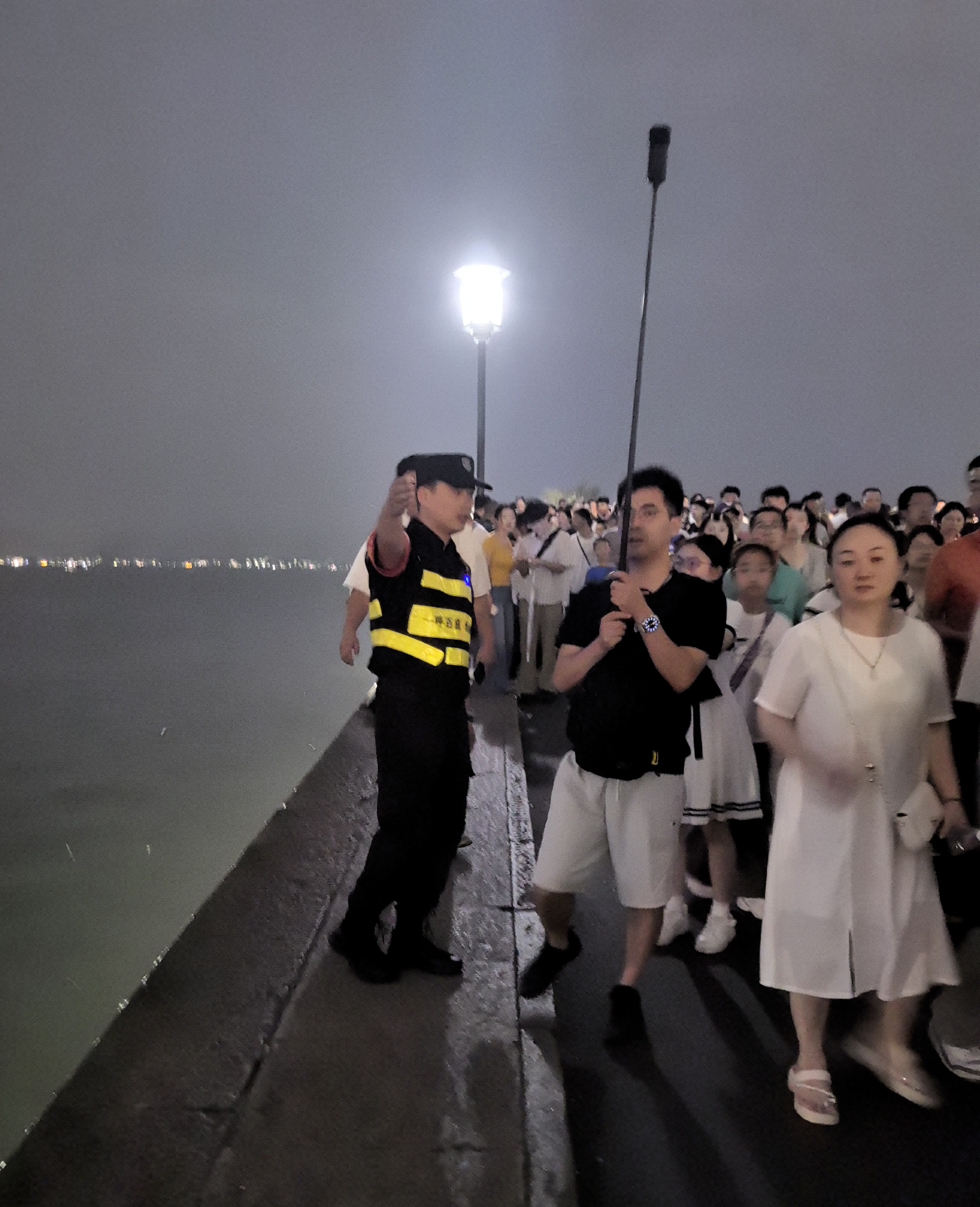 十月的断桥,游人如织。每年国庆期间都会迎来单日最大客流高峰。夜幕之下,美景之中,安保压力也随之而来。