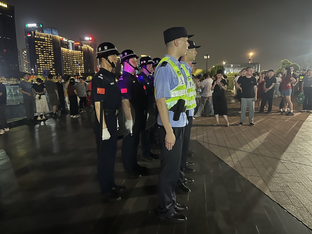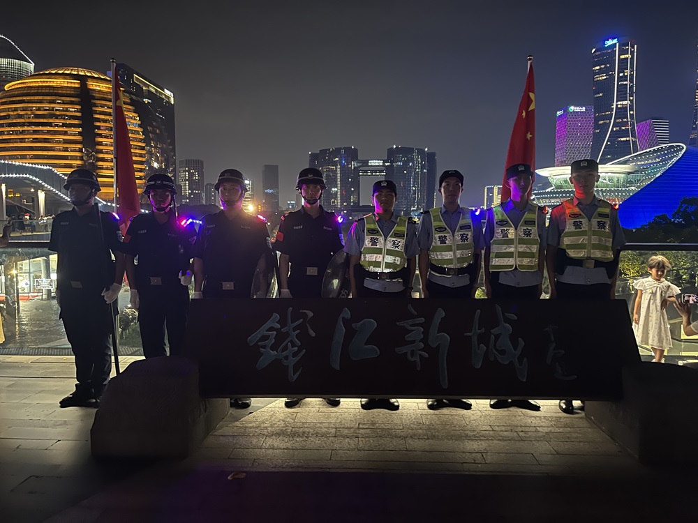 位于钱塘江畔的杭州城市阳台,是近几年杭州新兴的网红打卡胜地,每晚两场的“钱江新城灯光秀”,吸引了数以万计的游客。加上杭州大剧院前每晚上演的音乐喷泉,时间恰好和灯光秀错开,短时间内人流的巨大聚集,堪比一场大型活动,是对安保工作的极致考验。绿城保安公司专门抽调了大批身强体壮、孔武有力的保安队员在城市阳台担负执勤任务,在现场公安民警的带领下,开展治安巡逻、维持秩序、疏导人流等警保联动工作。他们分分秒秒神经紧绷,拉隔离栏,围人墙防护,佩戴肩灯,手拿喊话器不断提醒游客注意安全,化解游客之间矛盾,帮助游客寻找走散家人等,一场秀下来,队员们无暇欣赏眼前的璀璨,个个汗流浃背,却没有一个喊苦喊累。截止目前,钱江新城进行灯光秀和音乐喷泉期间,接受绿城保安员提供安全服务的市民和游客达100多万人次以上,没发生过一起安全事故。赢得了公安机关的高度赞誉和游人的一致点赞。