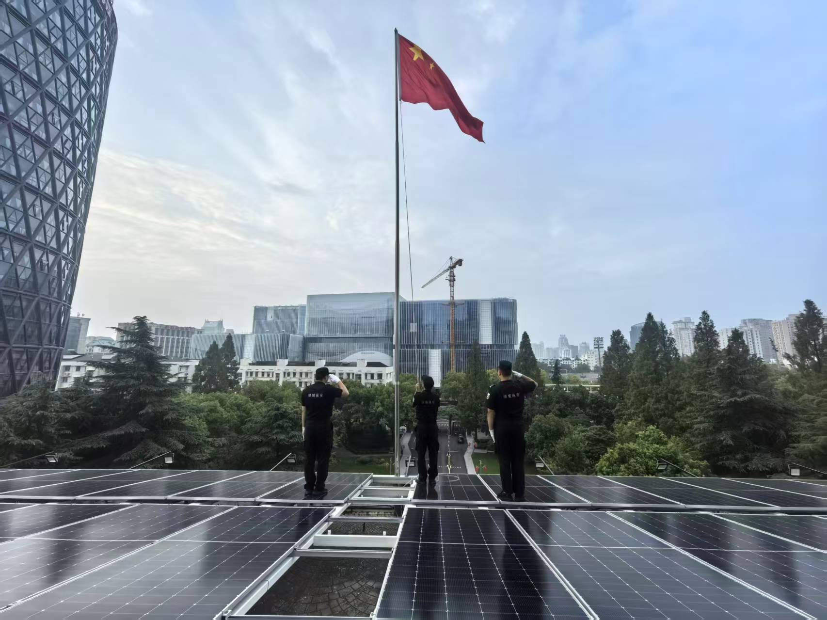 浙江日报是杭州市重点安保管控单位,为庆祝建国76周年,国庆清晨,一场庄严的升旗仪式在浙江日报大院举行,激发了队员们爱国爱岗的热情。并且以此次升旗仪式为契机,把满腔热情化作实际行动,进一步凝心聚力、拼搏奋进,以奋发图强的工作热情和一流的工作状态做好国庆安保工作。为了确保安全,国庆期间浙江日报保安队始终贯彻“预防为主、防治结合”的原则,增强安全意识,提高防范各种安全事故的能力,组织开展防恐防暴演练和消防演练,不断提高安全防范水平。加强门岗进出制度,外来人员与车辆进入大院需进行实名制登记,禁止外卖车辆进入大院,禁止化学危险物品的车辆进入大院停放,禁止机动车在院内修车、洗车、加油等,认真梳理工作中存在的突出问题和薄弱环节,适时组织督导督查,克服厌倦情绪,确保落实反恐防暴工作逐步推进,骨干带头,形成合力,确保客户单位的绝对安全。