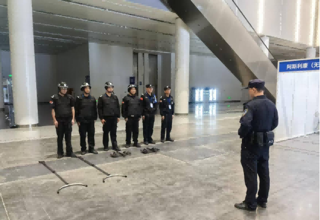 在筹备阶段,确保各项准备工作有序推进,安保部门组织各安检及保安人员提前勘察场地布局,规划人流疏导路线、划分安全管控区域,为确保活动能够顺利进行,安保部门还进行了遇突发状况的演练。演练现场,模拟场景依次展开:当“参会人员” 突发晕厥,就近安保人员第一时间发现并迅速上前,一边轻声安抚、维持周边秩序,一边通过对讲机同步上报指挥小组,联动医疗保障人员携带急救设备快速抵达;面对 “可疑人员试图闯入核心会场” 的模拟场景,入口安保人员保持冷静,严格执行阻拦问询流程,同步呼叫巡逻组支援,快速将人员带至指定区域核查,全程做到规范有礼、处置果断;在火情模拟环节,安保人员迅速启动应急预案,熟练使用灭火器扑灭火源,沿安全通道有序疏散,全程高效有序、忙而不乱。
