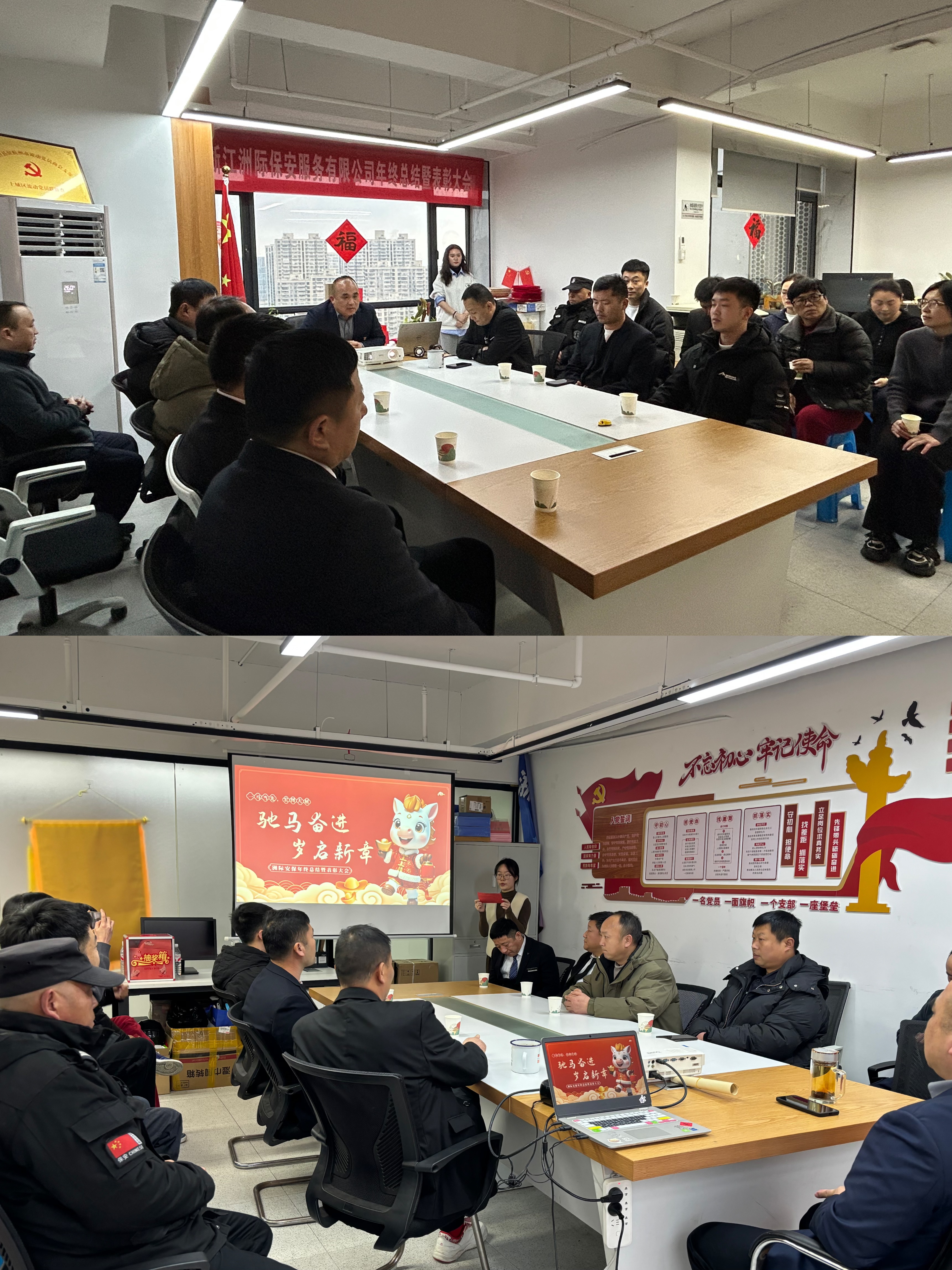 随后,董事长发表致辞,向全体员工致以最诚挚的问候与感谢。话语间,既有对过去一年全体同仁凝心聚力、默默坚守的肯定,也有对未来发展的殷切期许与坚定信心,鼓励大家不忘初心、勇担使命,继续以昂扬的姿态守护平安,共筑公司发展新辉煌。