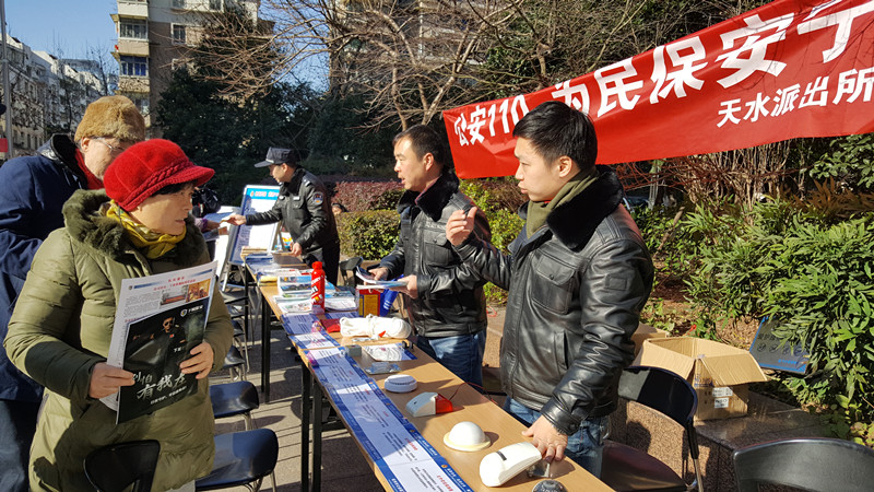 2018年1月10日上午,由天水派出所主办的防范通讯(网络)诈骗宣传活动在中大广场举行。杭州市下城保安服中心联网报警服务中心根据天水派出所的指示及公司领导的要求,提前部署,认真落实,积极参与到当天的宣传活动中。