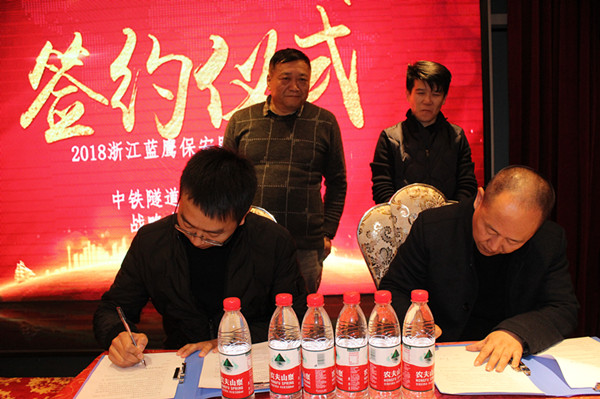 借着年会的召开,在特邀嘉宾的见证下,我浙江蓝鹰保安服务有限公司董事长杨明与中铁隧道集团机电工程有限公司(央企)代表人国佳先生签署了“2018战略合作协议”。为了提高企业核心竞争力,两家企业本着互惠互利、信任共赢的原则,强强联手,充分发挥各自的资源优势与平台优势,为保安服务行业打开一个新的局面。