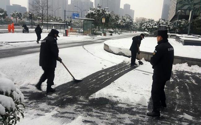 1月25日,杭州市迎来了2018年入冬的第一场降雪。厚厚的积雪给大家的出行带来诸多不便。杭州市安保服务集团有限公司驻市民中心特勤大队高度重视,充分认识抗雪防冻工作的重要性和紧迫性。为保障好市民中心行政区域车辆、人员的进出顺畅与安全。1月26日清晨,特勤大队联合武警中队、物业及江干区防汛办等单位开展扫雪除冰活动。此次扫雪除冰活动,市民中心特勤大队共计组织出动人员60余人次。