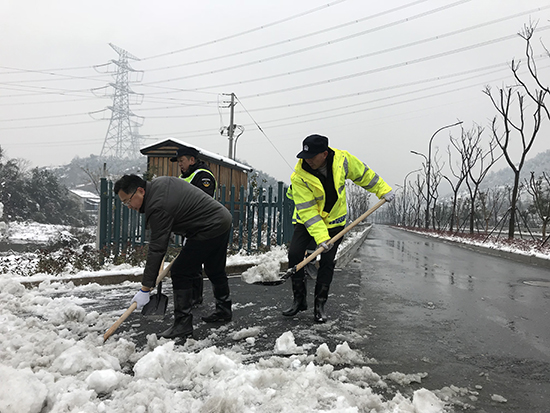 连日的雨雪天气,使得富阳区域出现不同程度的积雪冰冻现象,严重影响了行人的出行和道路安全。为此,交通集团发出紧急通知,号召各子公司组织人员清扫23省道大青立交至新登入城口段积雪,并做好防雪、防冻工作。