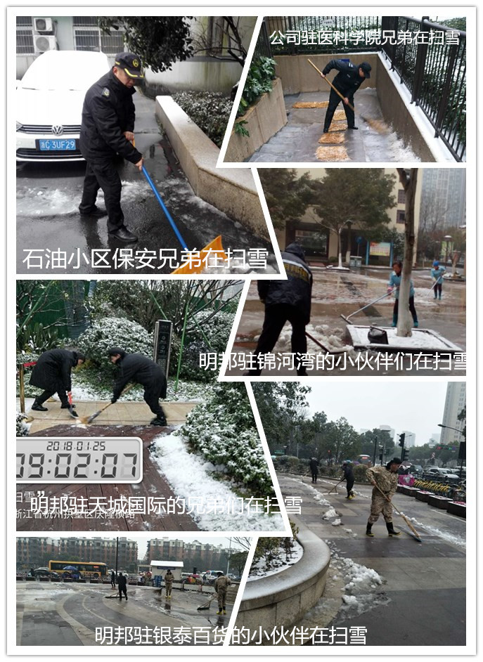 经过数小时的奋战,各驻点将主要出入口、管辖区域周边干道等地的积雪全部铲除,切实为出行的业主、过往的车辆开辟了一条温暖的通畅之路。