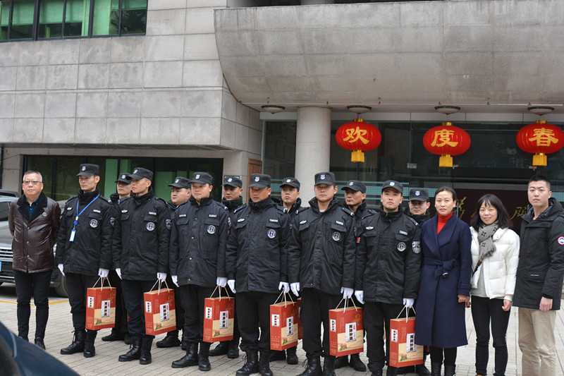 2018年2月15日上午,在万家灯火喜团圆的除夕夜里,公司总经理朱虹、副总经理张国芳、副总经理汪乾、总经理助理金赟等一行人来到各派驻点慰问这些在节假日坚守在岗位上的队员们,并向他们致以诚挚的感谢和新春的祝福。