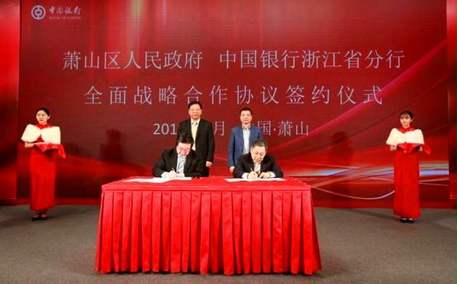 2018年3月26日,中国银行萧山分行揭牌暨萧山区人民政府中国银行浙江省分行战略合作签约仪式在杭州国际博览中心举行。