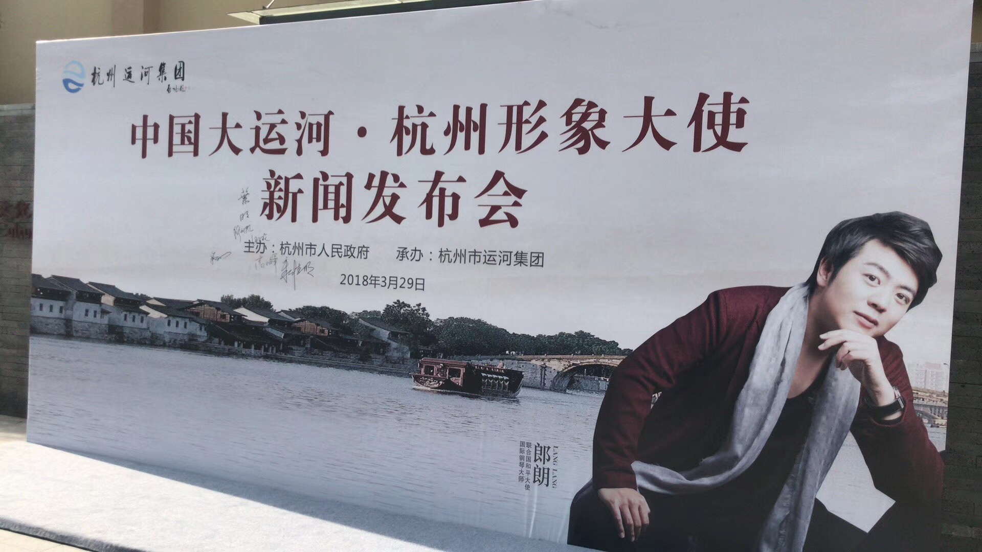 3月29日,中国大运河·杭州形象大使新闻发布会在大兜路历史街区召开,国际钢琴大师、联合国和平大使、杭州市文艺顾问郎朗,也出现在现场,由杭州拱墅保安服务公司驻大兜路历史街区保安队员进行安全护卫。