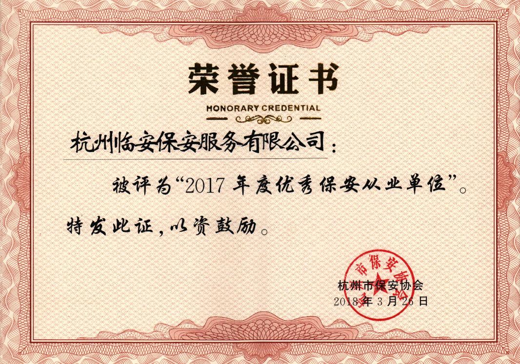 此次荣誉是公司全体员工团结一致、努力拼搏的成果。2017年公司先后参与浙江卫视“梦想的声音第二季”、“来吧,冠军”等大型安保任务;顺利取得安全生产标准化二级、安防技术资质二级资质;全力开拓博物馆、看守所、中电海康等大型安防项目,可谓硕果累累。今年1月,市协会年底考核,以现场查看、座谈交流、查阅资料等方式对公司的各类安保服务台账进仔细查阅,对公司的内部管理、队伍建设、业务拓展等各方面表示肯定。