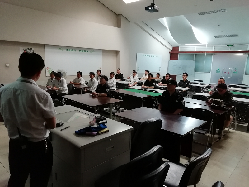 5月28上午9时,杭州图书馆保安队全体人员在夹层培训教室进行消防安全知识培训。培训内容主要包括火灾的基本常识、突发火灾应急处理、突发火灾处置流程、消防设施、设备的认识和使用方法、人员疏散、逃生自救知识。
