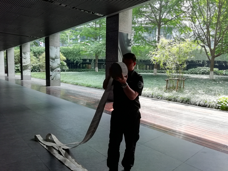 5月28上午10时,杭州图书馆保安队全体人员在图书馆地下长廊进行灭火设施设备实际操作培训,所有人员熟练掌握灭火设施、设备使用技能。