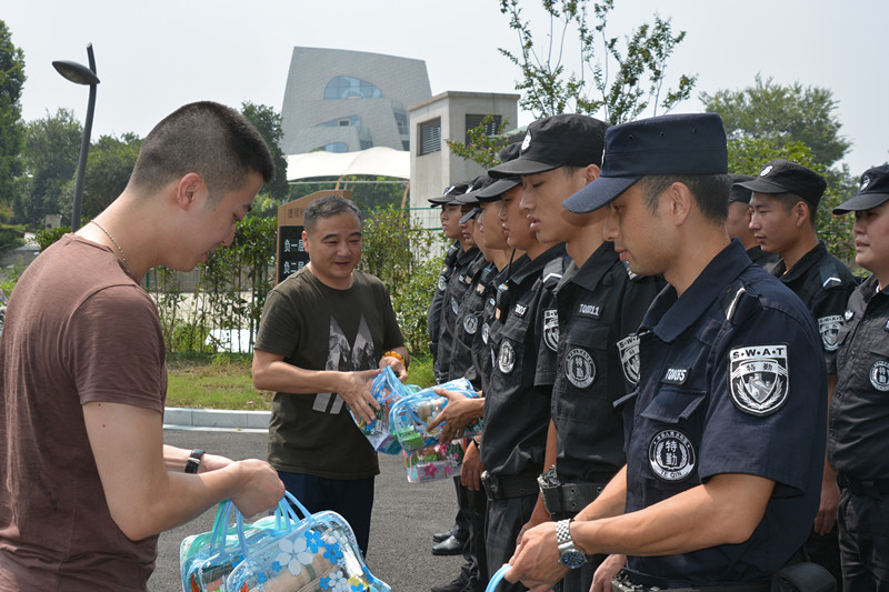 夏至时节,气温日渐炎热。为感谢那些不畏高温酷暑、依旧坚守在户外一线的员工,2018年8月10日,杭州上城区投资控股集团有限公司副总经理、基层工会联合会主席张毅勇在杭州上城区保安服务有限公司副总经理汪乾的陪同下,冒着酷暑,看望了坚守在高温一线的保安员们,为他们送去了防暑降温慰问品。