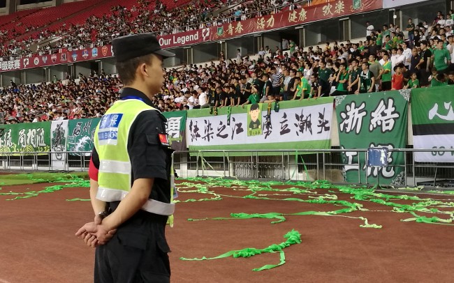 为确保本场比赛安全保障工作顺利进行,公司领导高度重视,组织召开安保专题会议。现场安保负责人根据本场比赛客队球迷多、外场人员聚集量大等特点,认真制定安保方案。在比赛开始前,各部门贯彻落实各项安保措施,认真做好岗前培训,加强思想教育,明确工作职责。现场负责人带领机动队员巡查各区域封控,并对重要区域安保力量进行部署,切实做好内场和看台管理,做好主队及客队球迷通道隔离等工作。