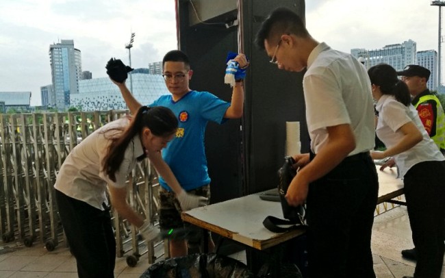 在本次安保工作中,全体安保队员统一着装、精神抖擞、准时集合。在比赛过程中克服天气炎热等困难,始终坚守岗位、认真执勤,安检组队员严查进出赛场物品,确保比赛环境安全有序。通过全体参战队员近六小时的连续奋斗,圆满完成本场中甲联赛浙江绿城VS浙江毅腾的安保任务。