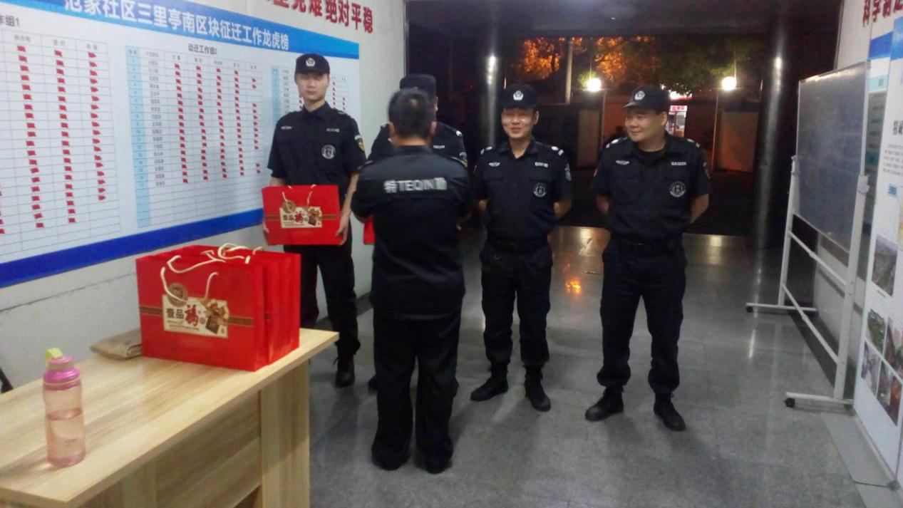 每逢佳节倍思亲!中秋节将至,为了让公司每个员工过上一个欢乐幸福的中秋佳节,9月13日,公司领导派保安部大队长李明分别来到各个执勤点对员工们进行慰问。