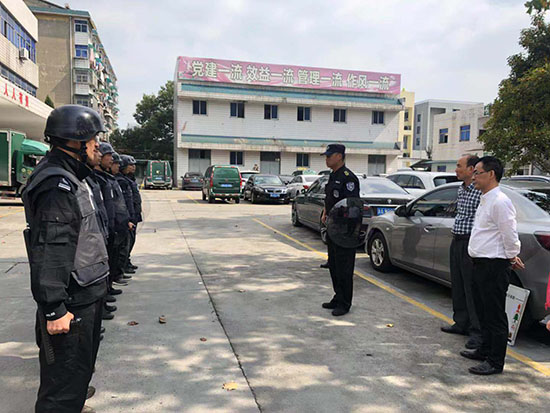 针对浙江惠迪森药业公司10名保安员主要开展六项技能培训:着装要求、登记要求、消防知识、盾牌使用,钢叉使用、灭火器使用。同时,对门岗保安员如何做好规范登记出入信息进行了宣贯和训练。保安员在询问来访者时需使用“您好”、“请问”等礼貌用语,并与被访问人确认,填好《访问单》之后才能放行来访者。