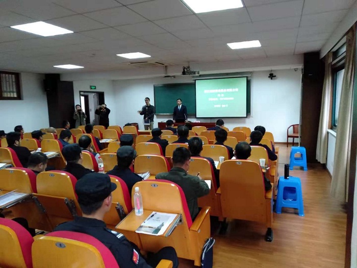 2018年11月23日上午9点,应杭州市教育局的邀请,浙江绿城保安公司保安部经理闫旭,对杭州市教育局直属学校76名保卫科长、保安主管就校园安保工作及实务操作知识讲座进行了授课。