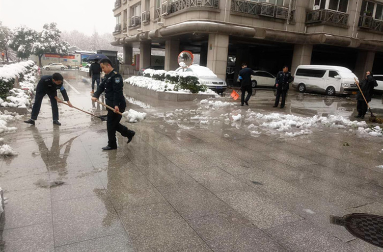 12月8日一场大雪,覆盖了整个杭城,催生了久违的杭城雪景,然而给我们出行带来了安全隐患。为确保出行安全,浙江卫邦保安公司第一时间启动应急预案,支部党员和广大一线保安员积极展开扫雪行动。 大家不畏严寒,说干就干,挥舞着铁锹、扫帚等劳动工具,忙碌的身影构成了一道靓丽的风景线。经过清扫,道路上积雪被清扫干净,保证了行人、车辆的安全出行。扫雪活动得到了许多路人和客户单位领导的点赞。
