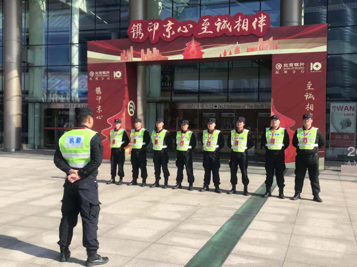 此次任务,有场面大、任务重、情况复杂、不好控制、不确定因素多、随机突发风险大等特点。为确保职工艺术节的顺利进行,公司保安部经理亲临现场勘查,落实岗位布点,分配岗位任务,制定了周密的突发事件应急处理计划。全体员工在活动当天主动放弃休息,发扬了不怕吃苦,任劳任怨的精神,坚守岗位,认真执勤。全程4个小时的演出,在公司领导科学安排和有效的组织下,队员们密切协作,无脱岗、无敷衍塞责现象、无勤务空档,表现了荣邦保安一贯有的责任心和执行力。圆满完成了“北京银行杭州分行成立十周年职工艺术节”安保任务。
