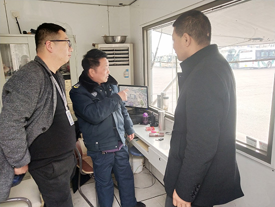 随后,检查组先后来到公交公司高桥停车场和富阳客运站。富阳客运站作为春运的主战场之一,由于有多条涉杭公交线路,人流量、车流量都比较大,安保任务也是相当大。公司领导现场听取了保安队长对车站保安人员的分布和工作任务的介绍,领导表达了公司对保安员的敬意,表示只有你们默默地辛苦付出,才能为人民群众创造一个安全、舒适、有序的乘车环境,为平安春运作出自己的贡献。也强调了在做好服务的同时,注意队员自身的安全。
