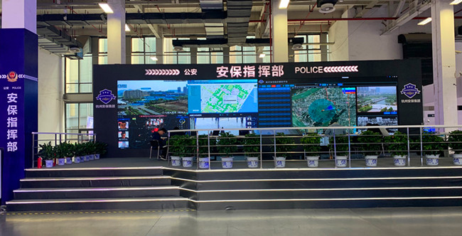 杭州市安保服务集团有限公司以专业大型活动安保运营集成商参展本次博览会,通过建设安博会现场公安实战指挥部,配以全方位“低空安全、水域安全、地面安全、地下安全”的安保维度,展示了“四维一体”的大型活动安保服务体系。安保指挥部主要功能全方位涵盖水、陆、空,构筑起大型活动安全保障多重立体防火墙。