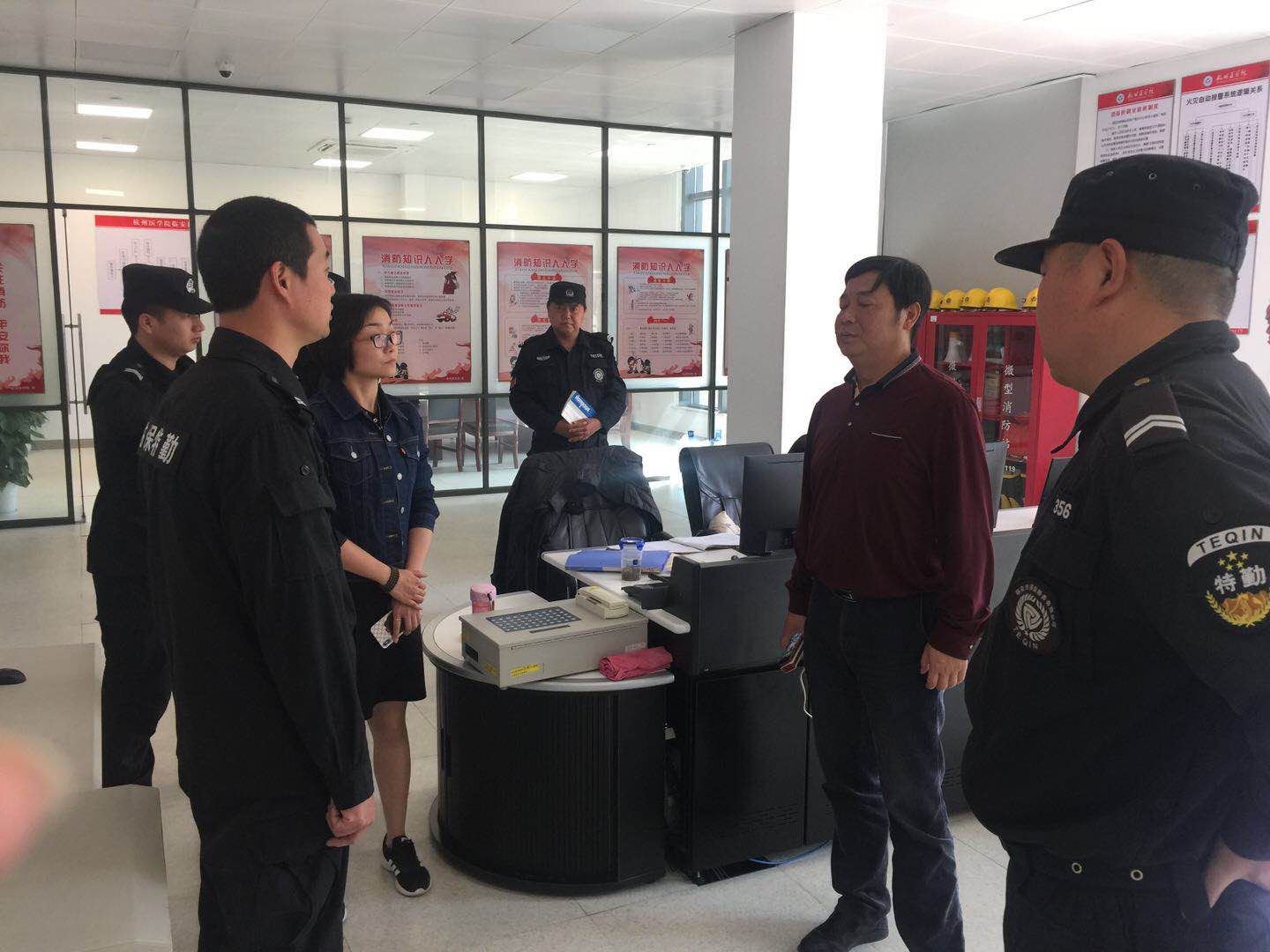 4月15日上午,由杭州医学院临安校区边慧祥带队的考评小组对我司维稳安保工作进行履职考核。杭州临安保安服务有限公司物业部经理罗芳芳陪同参加了此次考核。