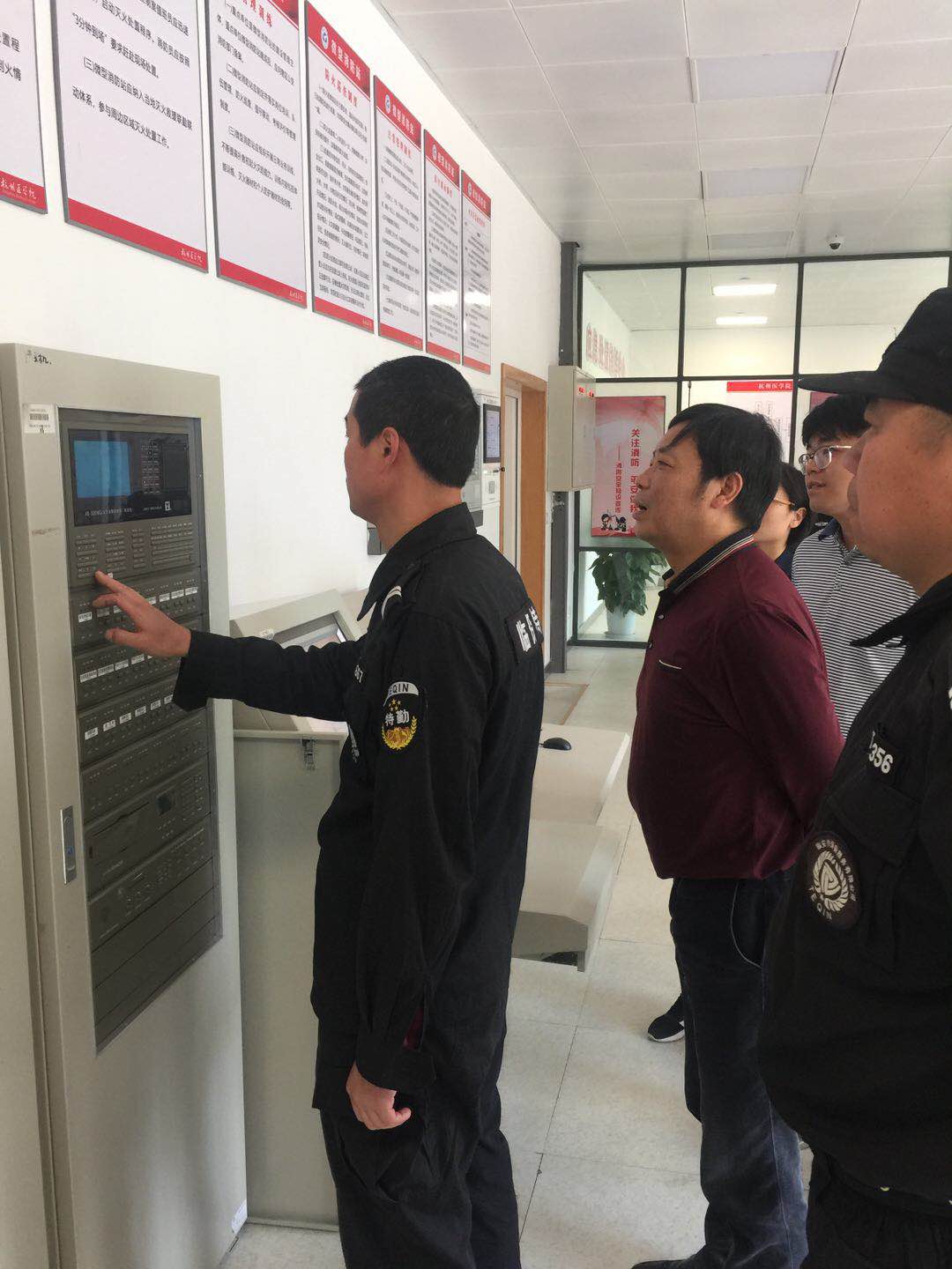 保卫处长边慧祥对校园各门岗、巡逻岗、消控中心等重点部位的安保工作进行全面检查,仔细翻阅了各岗位安全台账,并对值守人员进行了岗位职责及应急处置方法的考核。随后边处长观摩了反恐实战演习和火警演习,就各安保队员在演习中存在的不规范动作进行了指正。