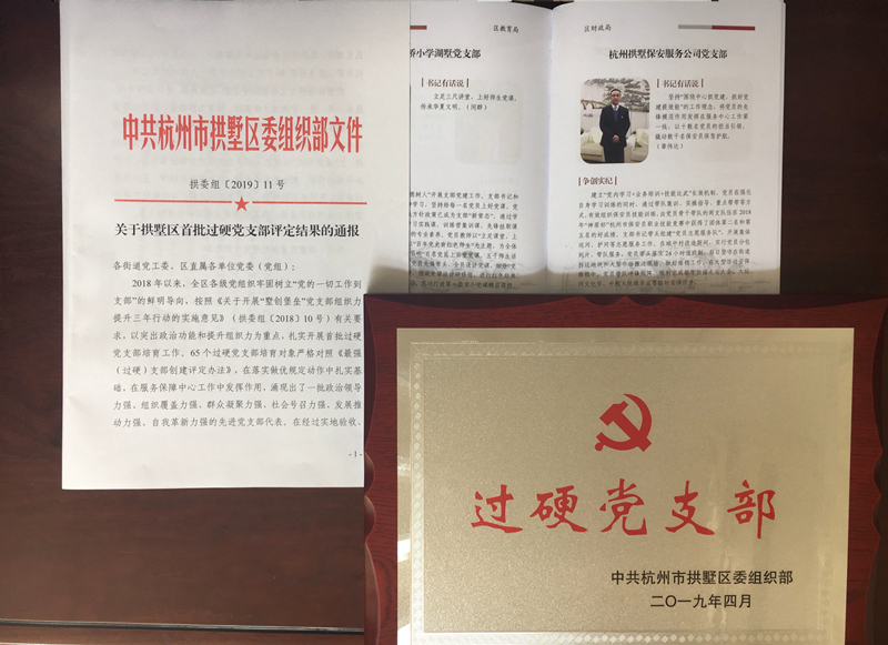 4月15日下午,杭州市拱墅区组织部召开拱墅区首批过硬支部表彰暨“墅领先锋”基层党支部书记示范培训班,并对区首批过硬党支部评定结果进行了通报,中共杭州拱墅保安服务公司党支部成为首批过硬支部,支部书记章伟达参加了表彰会议和授牌仪式。
