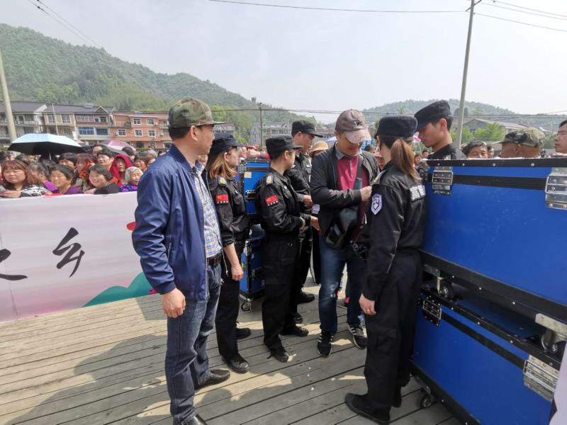 本次活动富阳保安公司共派驻特保人员35人次,由直属保安部副主任王晓明担任现场指挥,中队长李东负责本次活动现场执勤人员的分配。经过简短的列队整顿,李东队长将队伍分成六队,三个卡口处各部署一队,另外三个队负责舞台周围的秩序。李东队长严格落实每位安保人员的执勤职责,一再强调要及时应对一切突发情况,突发状况发生时要及时做好应急处置工作,确保“味道山乡”活动顺利进行。