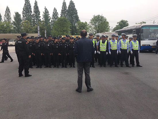 当日早晨5:50分由杭州富阳保安服务有限责任公司派出的50名保安人员在公司集合并准时出发,负责本次开幕式的安保工作,7:10分左右到达活动现场,直属保安部副主任王晓明负责现场活动人员的安排、部署。经过简短的列队整顿,王主任开始根据现场情况对安保人员进行分配。