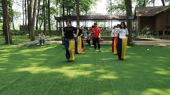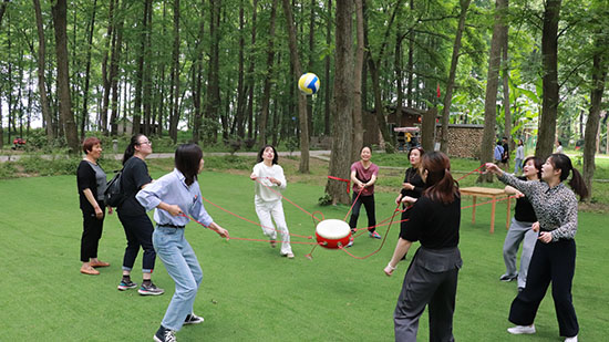 午餐后,大家体验了同心鼓、袋鼠接力跳等趣味活动。在同心鼓环节场面异常激烈,但各团队成员在短的时间内发现游戏的规律与诀窍,大家凭借100%的专注与信念,一次次刷新纪录,也一步步提升团队协作默契。