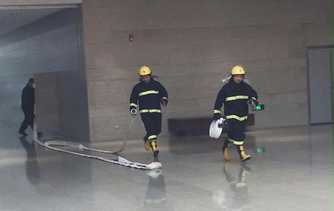 下午13时30分,按照预案的要求,中控中心启动消防应急响应,消防应急指挥组、灭火行动组、疏散引导组、现场警戒组、现场救援组、后勤保障组等迅速到下沉广场集合,安装在馆内里的烟感报警器同时发出了尖锐的火灾警报声。接到火警后消防控制室值班人员呼叫队员现场确认,“火灾”确认后消控主机由“手动”转换“自动”,同时开启疏散广播、命令微型消防站保安队员现场支援。